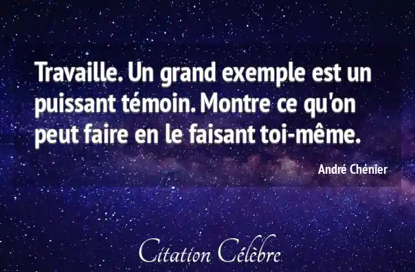 Travaille. Un grand exemple est un puissant témoin. Montre ce qu'on peut faire en le faisant toi-même.