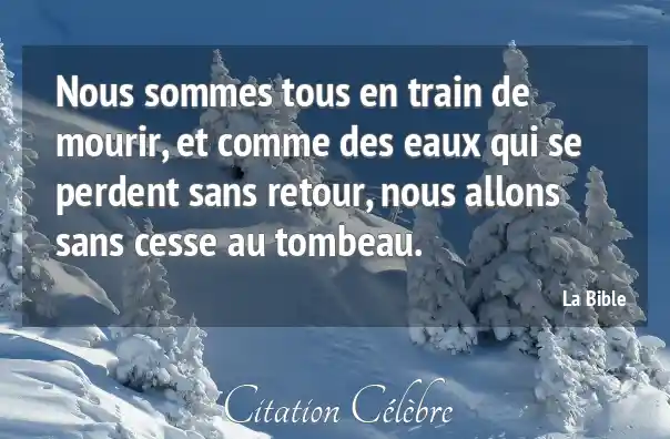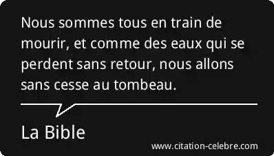 Nous sommes tous en train de mourir, et comme des eaux qui se perdent sans retour, nous allons sans cesse au tombeau.