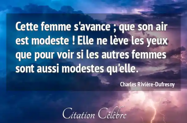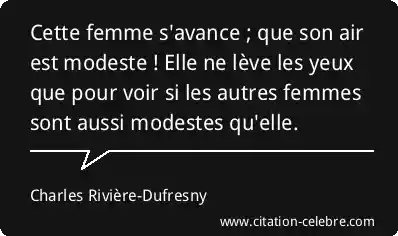 Cette femme s'avance ; que son air est modeste ! Elle ne lève les yeux que pour voir si les autres femmes sont aussi modestes qu'elle.