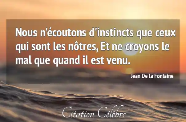 Nous n'écoutons d'instincts que ceux qui sont les nôtres, Et ne croyons le mal que quand il est venu.