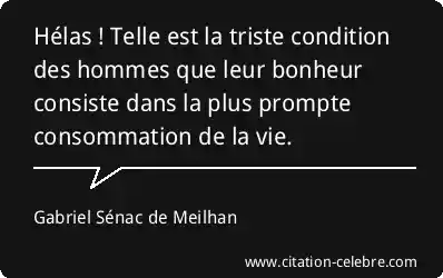Hélas ! Telle est la triste condition des hommes que leur bonheur consiste dans la plus prompte consommation de la vie.