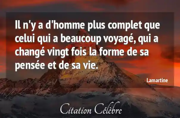 Il n'y a d'homme plus complet que celui qui a beaucoup voyagé, qui a changé vingt fois la forme de sa pensée et de sa vie.