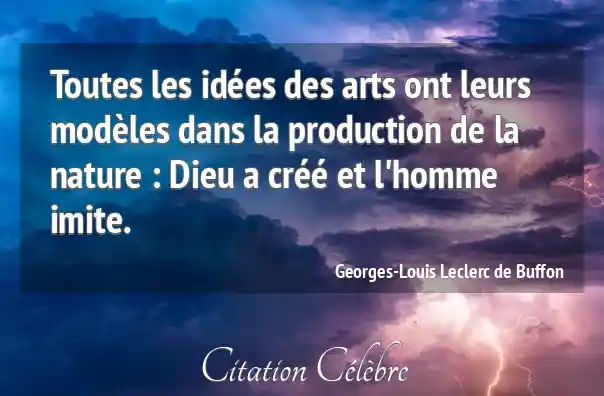 Toutes les idées des arts ont leurs modèles dans la production de la nature : Dieu a créé et l'homme imite.