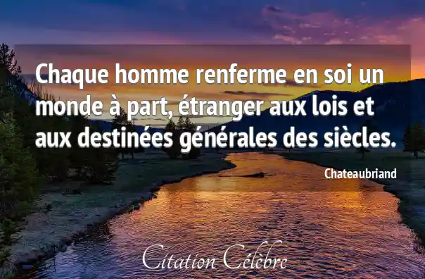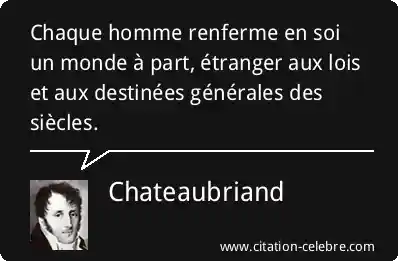 Chaque homme renferme en soi un monde à part, étranger aux lois et aux destinées générales des siècles.