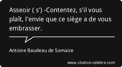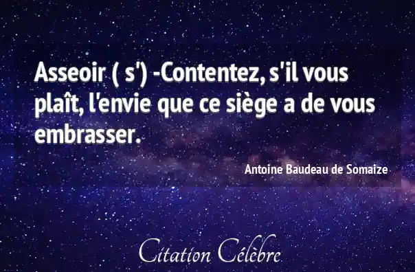 Asseoir ( s') -Contentez, s'il vous plaît, l'envie que ce siège a de vous embrasser.