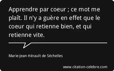 Apprendre par coeur ; ce mot me plaît. Il n'y a guère en effet que le coeur qui retienne bien, et qui retienne vite.