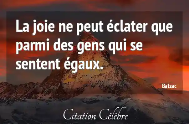 La joie ne peut éclater que parmi des gens qui se sentent égaux.
