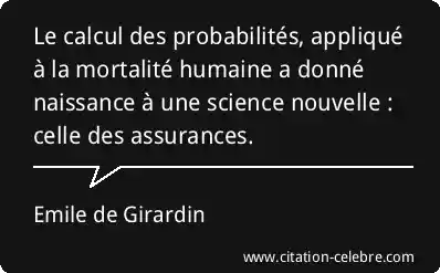 Le calcul des probabilités, appliqué à la mortalité humaine a donné naissance à une science nouvelle : celle des assurances.