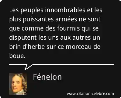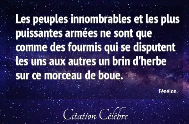 Les peuples innombrables et les plus puissantes armées ne sont que comme des fourmis qui se disputent les uns aux autres un brin d'herbe sur ce morceau de boue.