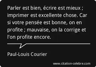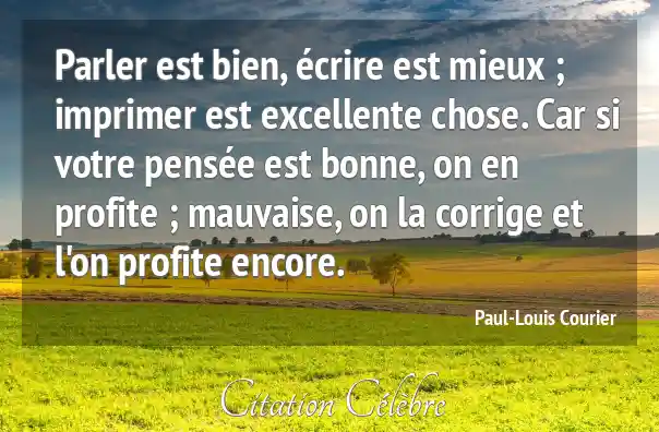 Parler est bien, écrire est mieux ; imprimer est excellente chose. Car si votre pensée est bonne, on en profite ; mauvaise, on la corrige et l'on profite encore.