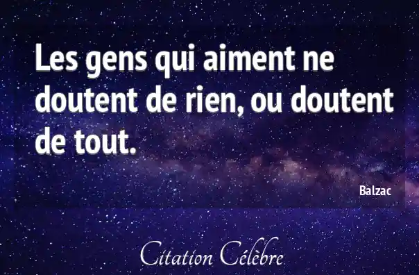 Les gens qui aiment ne doutent de rien, ou doutent de tout.