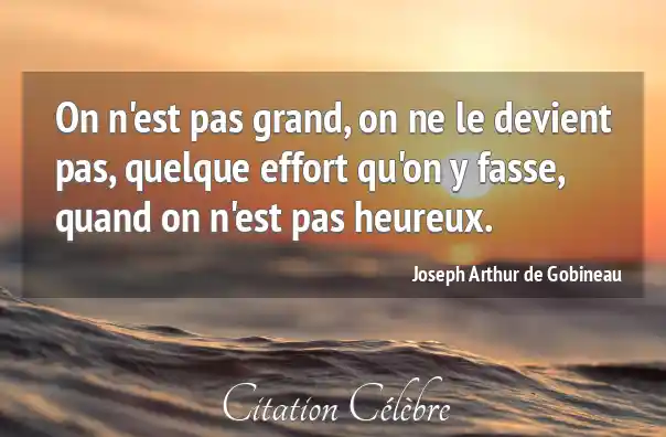 On n'est pas grand, on ne le devient pas, quelque effort qu'on y fasse, quand on n'est pas heureux.