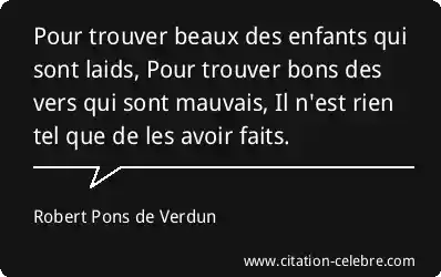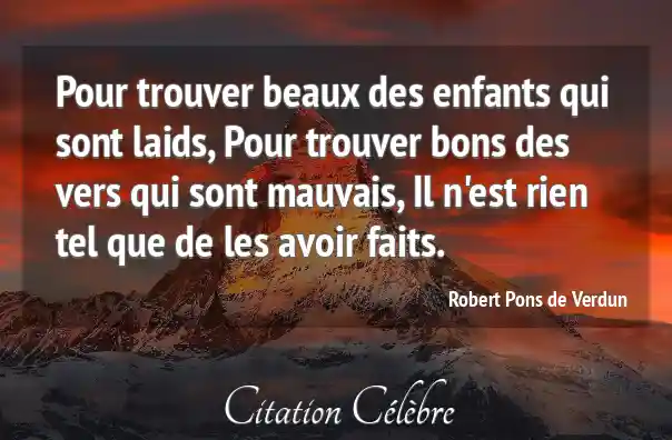 Pour trouver beaux des enfants qui sont laids, Pour trouver bons des vers qui sont mauvais, Il n'est rien tel que de les avoir faits.