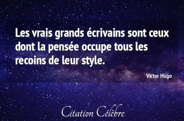 Les vrais grands écrivains sont ceux dont la pensée occupe tous les recoins de leur style.