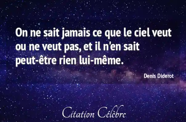 On ne sait jamais ce que le ciel veut ou ne veut pas, et il n'en sait peut-être rien lui-même.