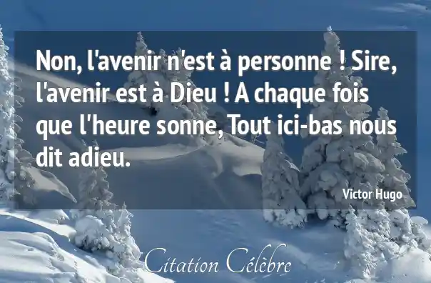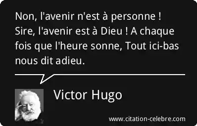 Non, l'avenir n'est à personne ! Sire, l'avenir est à Dieu ! A chaque fois que l'heure sonne, Tout ici-bas nous dit adieu.