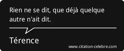 Rien ne se dit, que déjà quelque autre n'ait dit.