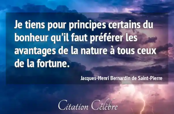 Je tiens pour principes certains du bonheur qu'il faut préférer les avantages de la nature à tous ceux de la fortune.