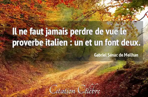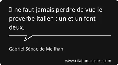 Il ne faut jamais perdre de vue le proverbe italien : un et un font deux.