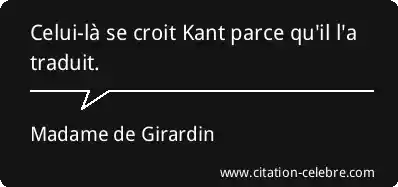 Celui-là se croit Kant parce qu'il l'a traduit.