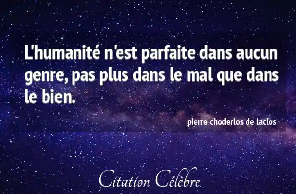L'humanité n'est parfaite dans aucun genre, pas plus dans le mal que dans le bien.