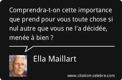Comprendra-t-on cette importance que prend pour vous toute chose si nul autre que vous ne l'a décidée, menée à bien ?