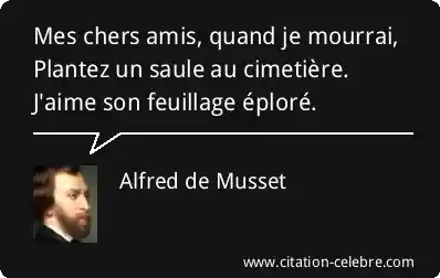 Mes chers amis, quand je mourrai, Plantez un saule au cimetière. J'aime son feuillage éploré.