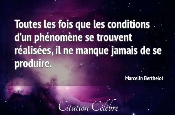 Toutes les fois que les conditions d'un phénomène se trouvent réalisées, il ne manque jamais de se produire.
