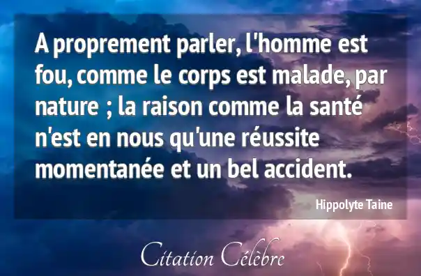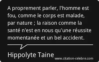 A proprement parler, l'homme est fou, comme le corps est malade, par nature ; la raison comme la santé n'est en nous qu'une réussite momentanée et un bel accident.