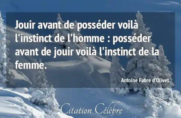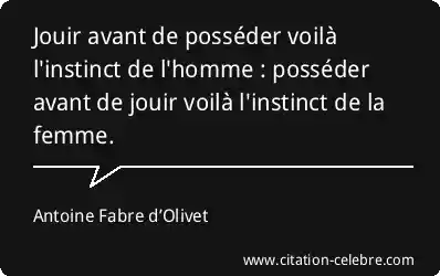 Jouir avant de posséder voilà l'instinct de l'homme : posséder avant de jouir voilà l'instinct de la femme.