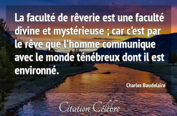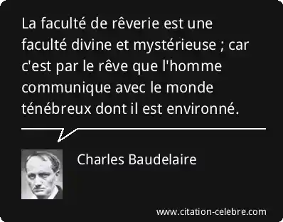 La faculté de rêverie est une faculté divine et mystérieuse ; car c'est par le rêve que l'homme communique avec le monde ténébreux dont il est environné.