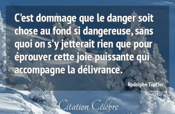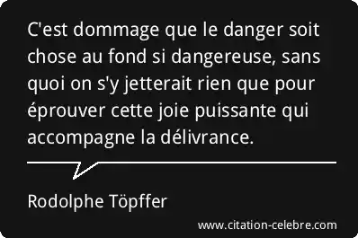 C'est dommage que le danger soit chose au fond si dangereuse, sans quoi on s'y jetterait rien que pour éprouver cette joie puissante qui accompagne la délivrance.