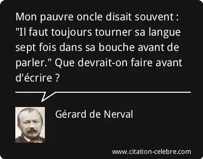 Mon pauvre oncle disait souvent : "Il faut toujours tourner sa langue sept fois dans sa bouche avant de parler." Que devrait-on faire avant d'écrire ?