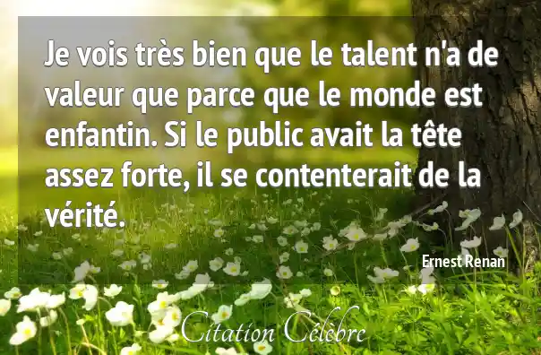 Je vois très bien que le talent n'a de valeur que parce que le monde est enfantin. Si le public avait la tête assez forte, il se contenterait de la vérité.