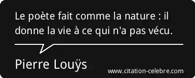 Le poète fait comme la nature : il donne la vie à ce qui n'a pas vécu.