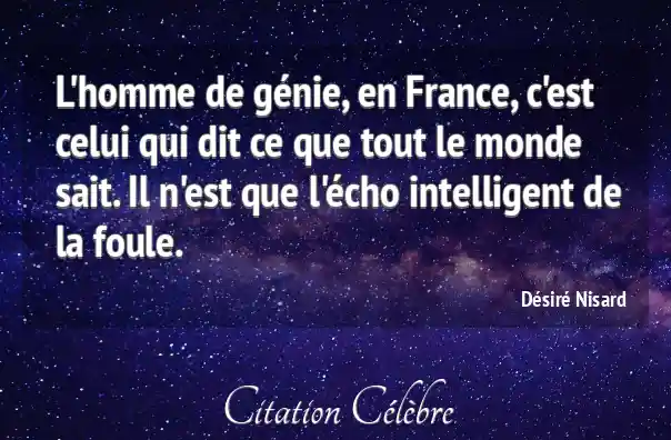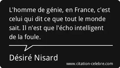 L'homme de génie, en France, c'est celui qui dit ce que tout le monde sait. Il n'est que l'écho intelligent de la foule.