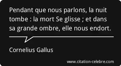 Pendant que nous parlons, la nuit tombe : la mort Se glisse ; et dans sa grande ombre, elle nous endort.