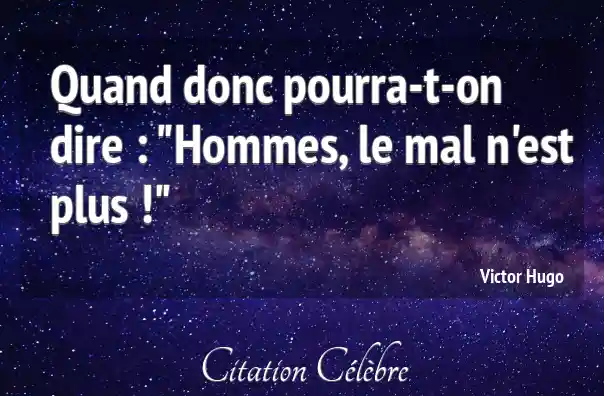 Quand donc pourra-t-on dire : "Hommes, le mal n'est plus !"