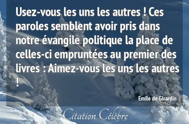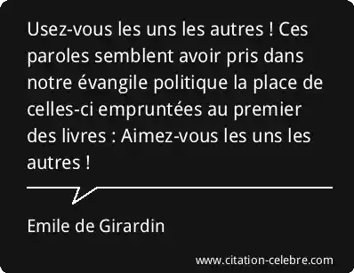 Usez-vous les uns les autres ! Ces paroles semblent avoir pris dans notre évangile politique la place de celles-ci empruntées au premier des livres : Aimez-vous les uns les autres !