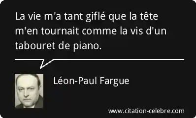 La vie m'a tant giflé que la tête m'en tournait comme la vis d'un tabouret de piano.