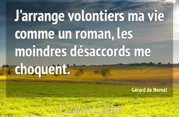 J'arrange volontiers ma vie comme un roman, les moindres désaccords me choquent.
