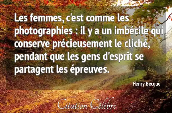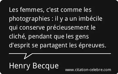 Les femmes, c'est comme les photographies : il y a un imbécile qui conserve précieusement le cliché, pendant que les gens d'esprit se partagent les épreuves.