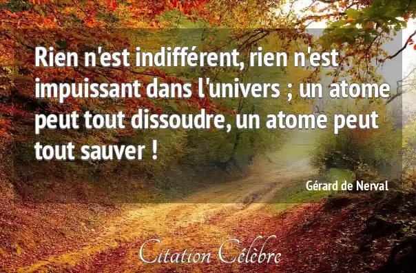 Rien n'est indifférent, rien n'est impuissant dans l'univers ; un atome peut tout dissoudre, un atome peut tout sauver !