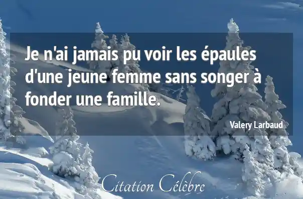 Je n'ai jamais pu voir les épaules d'une jeune femme sans songer à fonder une famille.