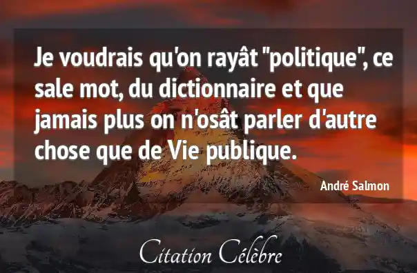 Je voudrais qu'on rayât "politique", ce sale mot, du dictionnaire et que jamais plus on n'osât parler d'autre chose que de Vie publique.