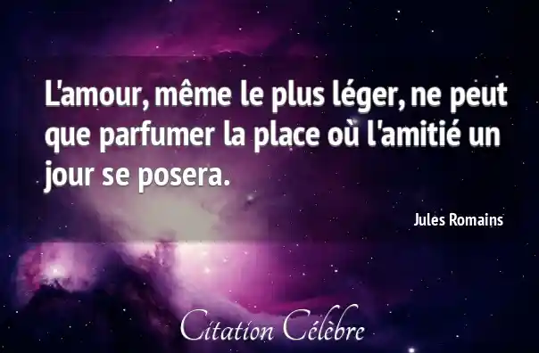 L'amour, même le plus léger, ne peut que parfumer la place où l'amitié un jour se posera.