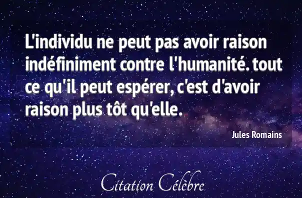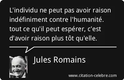 L'individu ne peut pas avoir raison indéfiniment contre l'humanité. tout ce qu'il peut espérer, c'est d'avoir raison plus tôt qu'elle.