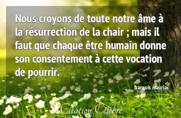 Nous croyons de toute notre âme à la résurrection de la chair ; mais il faut que chaque être humain donne son consentement à cette vocation de pourrir.
