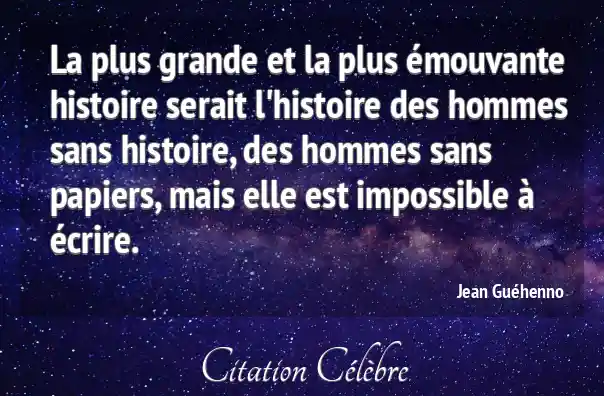 La plus grande et la plus émouvante histoire serait l'histoire des hommes sans histoire, des hommes sans papiers, mais elle est impossible à écrire.