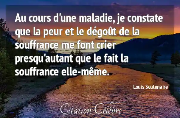 Au cours d'une maladie, je constate que la peur et le dégoût de la souffrance me font crier presqu'autant que le fait la souffrance elle-même.